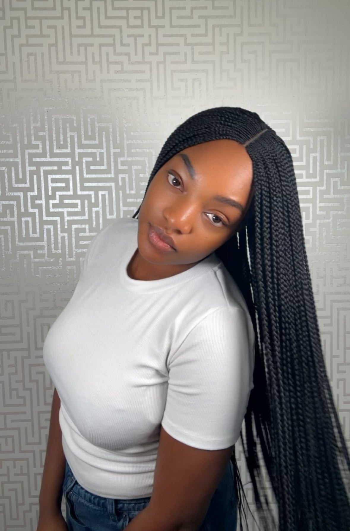 Preloved middle part cornrow braided wig (26”)
